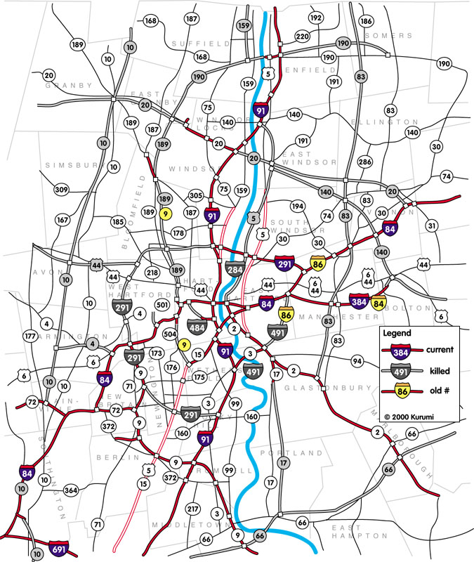 Once proposed as an expressway from I-84 at East Hartford to I-91 at East Windsor,