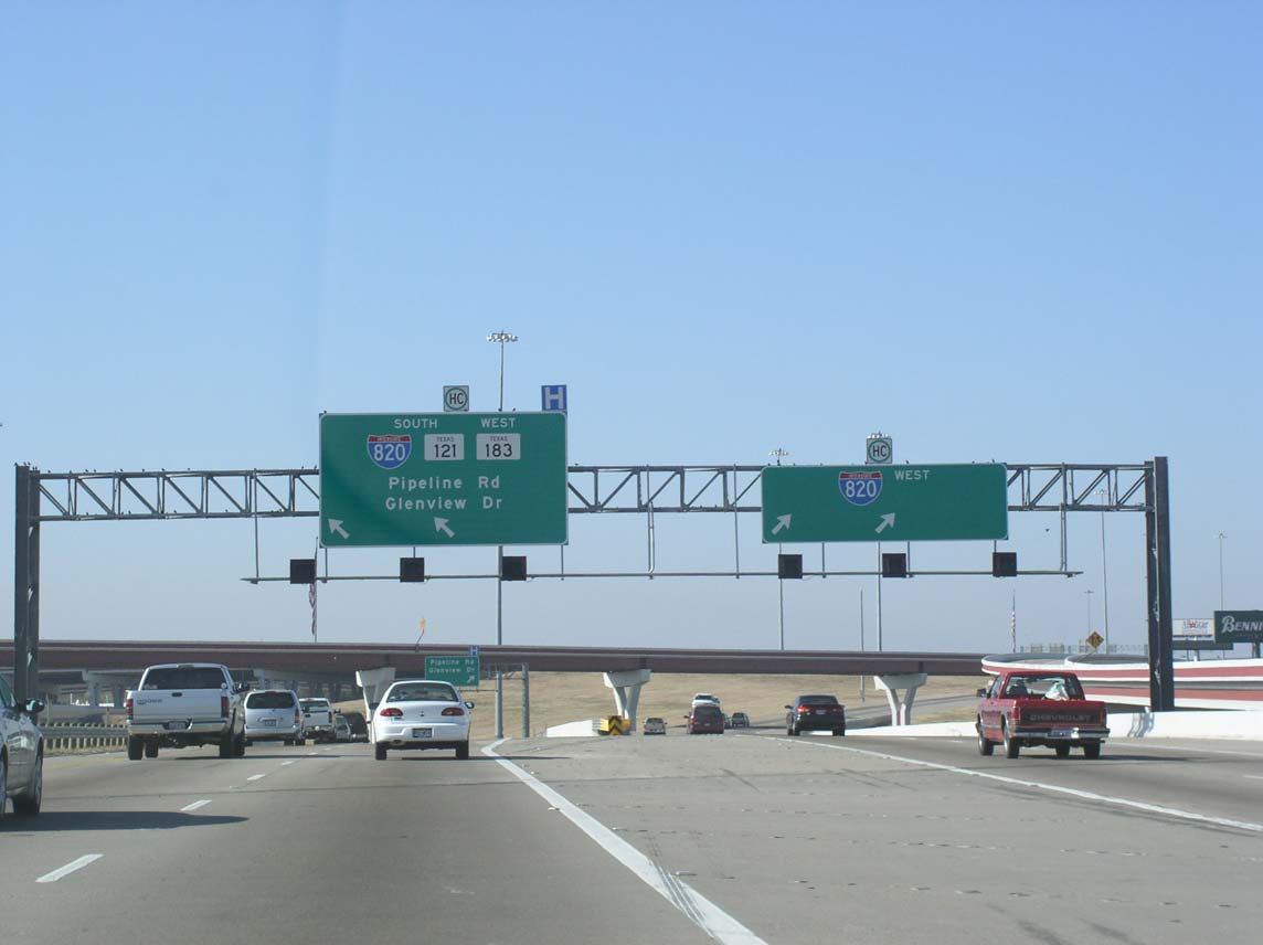Photo taken approaching on TX 183 west, by Kurumi, in December 2003. (larger photo) DesignationPicture Interstate 820 and I-20 forming a complete loop around the city.