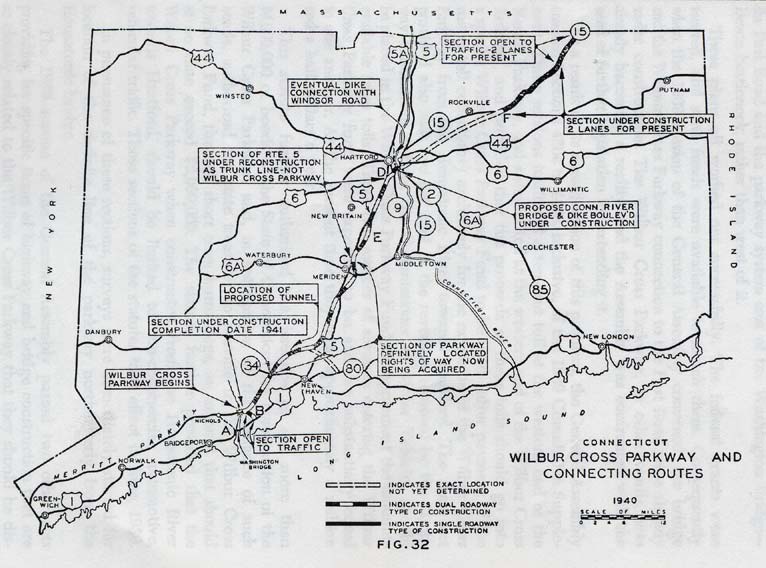 The portion of the Wilbur Cross Parkway east of the Connecticut River, which was never connected to the rest of the Parkway, was in the 1940s renamed the Wilbur Cross Highway.